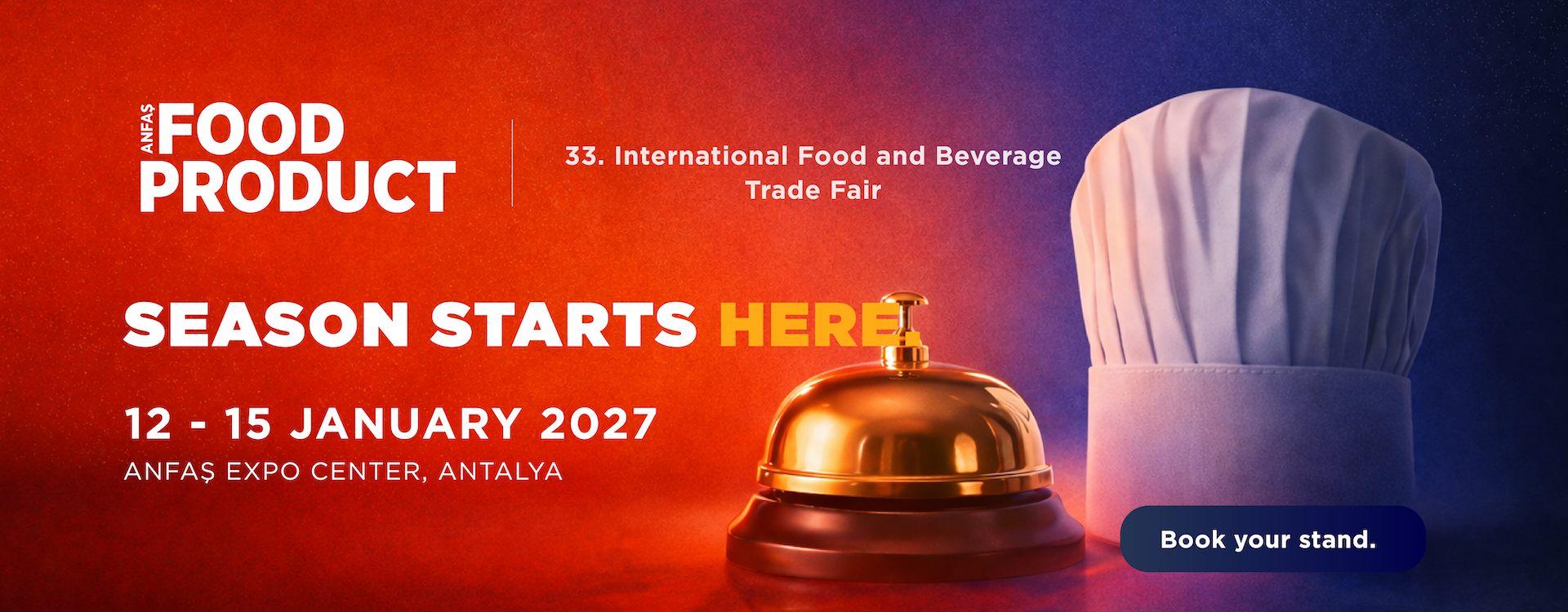 ANFAŞ - International Fair and Congress Center, which brings the sector together with world markets from Antalya with its more than a quarter century of experience in fair organization, is opening the doors of FoodProduct - International Food and Beverage Specialization Fair for the 32nd time.